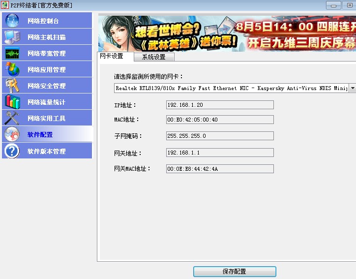 在"P2P控制"页面,你需要选择正确的物理网卡,如果安装主机上装有两块或者多块