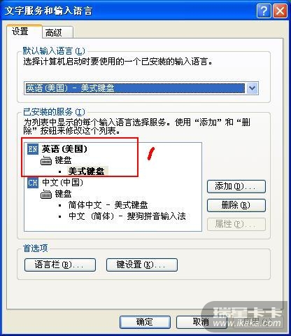 2、之后出现对话框,如果显示的是下面这个图,请单击选中“【EN】英语(美国”)这个项目,然后点击其右侧的“删除”;
