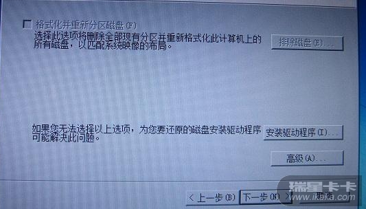 另外在还原时为什么不能使用那个格式化并重新分区?缺少什么东西吗?