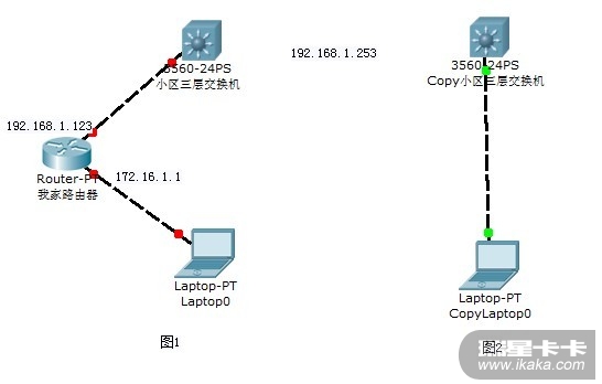 在1的环境下我的电脑可以上网,但是把我家的那个TPlink的小路由去了以后图2那样拓扑,无法上网,qq这样不依赖dns服务的也不能使用,但是可以登录小区的三层交换机,也就是小区路由,提示dns连接失败,即便手动添加上dns也不行,ip如图所示
