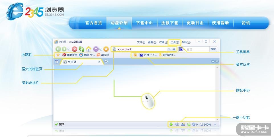 2345是中国第二大网址导航,绿色实用。这个浏览器是带了wxf127853推广ID的,下载后不要重命名,你每天点击一次浏览器访问主页中的网址(如百度、腾讯、网易),wxf127853就得点积分,最后我要说下这个浏览器真的不错,比360安全浏览器好用多了!!!下载地址(是最新版V1.3)http://115.com/file/ansy57g3#