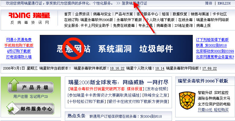 今天瑞星主页又更新了,找来找去,不知在哪里登陆瑞星通行证?