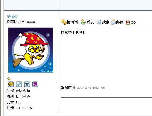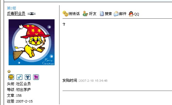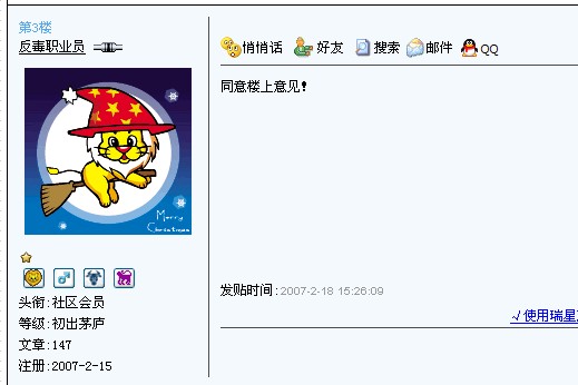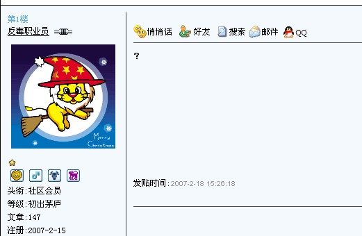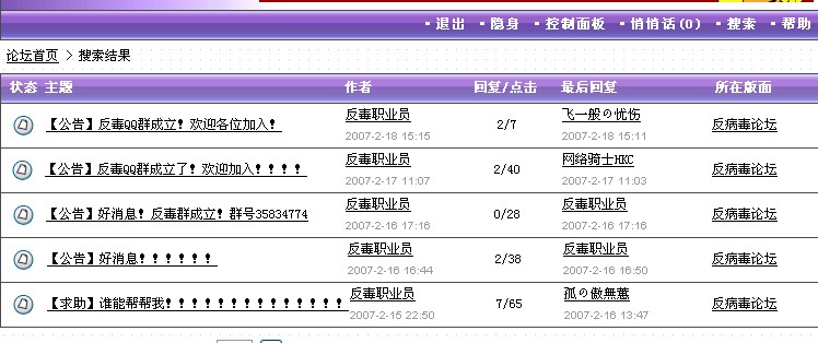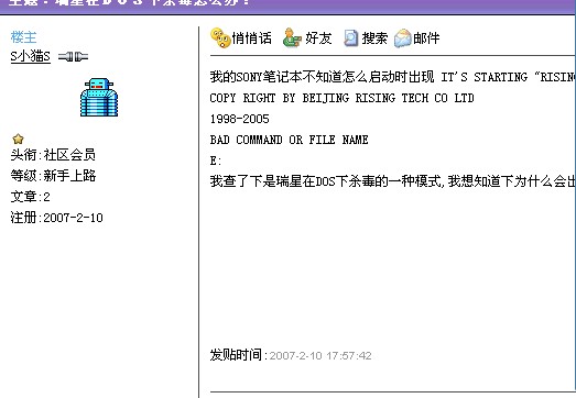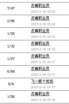 在反病毒区有个名字叫 反毒职业员 的 不管什么帖子都回复 ?号 或同意楼上意见..