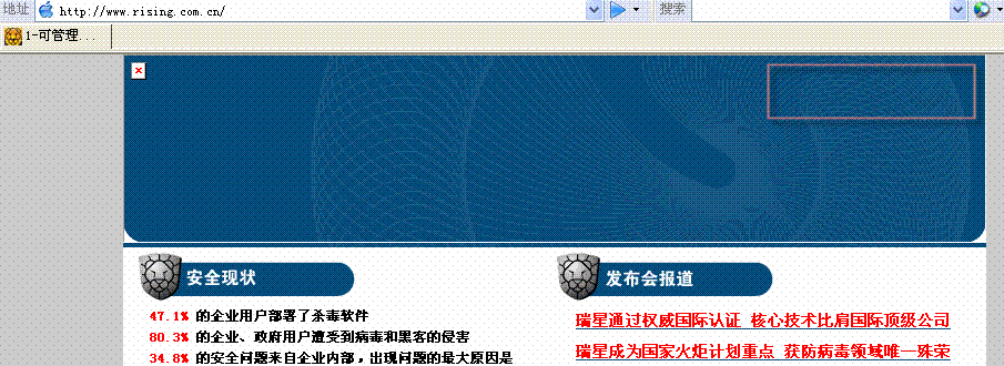 最近浏览瑞星主页“http://www.rising.com.cn/”总是抵达“安全现状或发布会报道”的页面,入图: