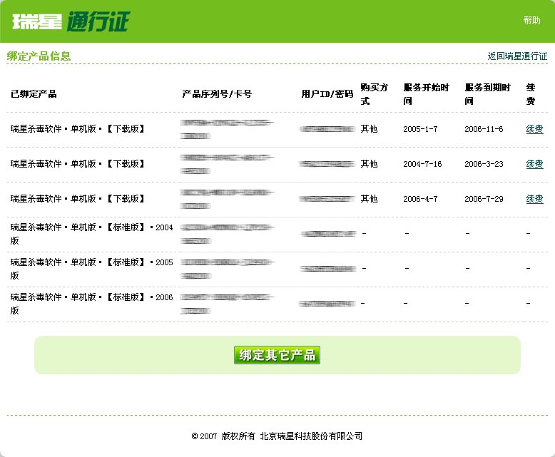 瑞星的单机版无法查看到服务期限的..