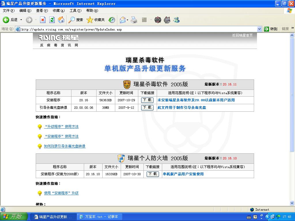 瑞星单机产品更新服务网站是不是写错字了.....