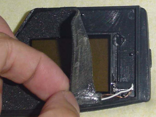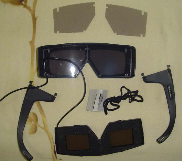 当然关键还是液晶片,固定在镜框上,有两个电极焊接到插头引线上。