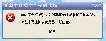 好好我台电晶彩COOL-U盘,2G,以前使用好好的,但今天复制500M以上的文件主复制不了,老是说写保护,这U盘根本没有写保护开关啊!郁men啊!