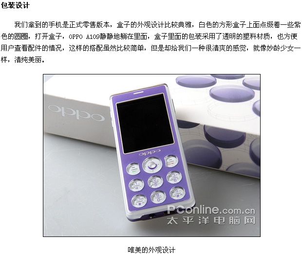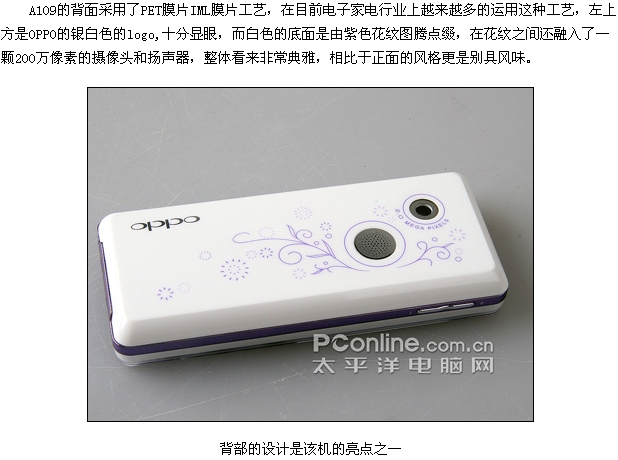 说到OPPO,大家都会想到它出色的MP3/MP4等随身听产品,OPPO的MP3一直都是国产MP3的中高端产品,其优秀的音质和出色的做工都是MP3玩家所推崇的。2008年5月,OPPO正式进军手机行业,推出首款手机A103就以标志性的笑脸造型和出色的音质让我们眼前一亮,这次OPPO的第2款手机产品也上市了,型号是A109。