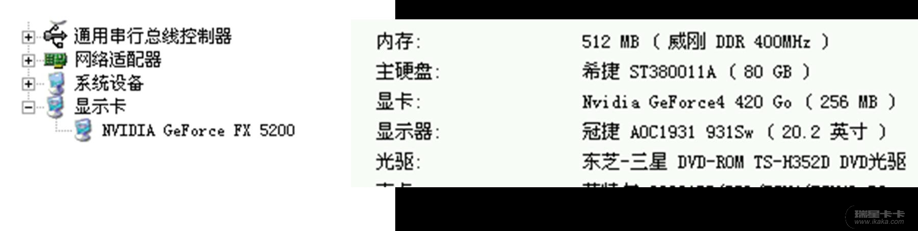 左边是设备管理器显示的:NVIDIA GeForce FX5200