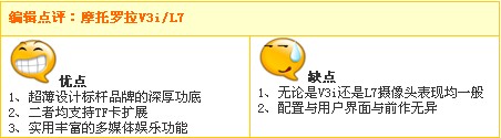 摩托罗拉 V3i 详细参数 基本参数 型号 V3i 上市时间 2005 手机类型 折叠 网络制式 GSM 850/900/1800/1900 外形参数 体积 98×53×13.9mm 重量 97克 外屏参数 彩屏,65536色,STN,96×80像素 主屏参数 彩屏,26万色,TFT,176×220像素 基本功能 通话时间 200-430 分钟 待机时间 180-290 小时 铃声 72和弦,MP3铃声 短信息 SMS短信,EMS短信,MMS短信 输入法 中文输入法 游戏 内置游戏 主要功能 内置震动,内置天线,时钟,来电大头贴,录音功能 附加功能 闹钟,日历,计算器 数据应用功能 数据业务 GPRS JAVA Java MIDP 2.0 WAP上网 wap 2.0 其它数据功能 支持BREW,支持蓝牙,支持TransFlash卡,USB接口,最大512MB 多媒体 MP3支持,视频播放,iTunes软件 高级扩展功能 摄像头 CMOS传感器,内置摄像头,123万像素 拍摄功能描述 支持8倍数码变焦和视频录制,最大分辩率:1280×1024像素 内存容量 30M 摩托罗拉 SLVR L7 详细参数 基本参数 型号 SLVR L7 上市时间 2005 手机类型 直板 网络制式 GSM 900/1800/1900 外形参数 体积 113.5×49×11.5mm 重量 85克 外壳颜色 银色,黑色 主屏参数 彩屏,26万色,TFT,176×220像素,1.9寸 电池 锂电池 基本功能 通话时间 380 分钟 待机时间 420 小时 铃声 24和弦,MP3铃声 短信息 SMS短信,EMS短信,MMS短信 输入法 T9中文输入法 游戏 内置游戏 主要功能 内置震动,内置天线,时钟 附加功能 闹钟,日历,计算器 数据应用功能 数据业务 EDGE GPRS JAVA 支持Java WAP上网 wap 2.0 其它数据功能 支持蓝牙,支持数据线,支持TransFlash卡,最大扩展512M 多媒体 MP3支持,视频播放 高级扩展功能 摄像头 30万像素,内置摄像头 拍摄功能描述 4倍数码变焦,最大输出640 x 480像素 内存容量 5M