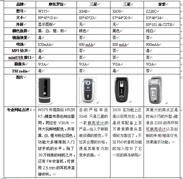 但是我表哥今年30岁了,用他的话来说,那叫成熟男人,好像还是MOTO的这款 W375合适一些吧。看它的功能,说待机时间长,我觉得挺适合他那样的健忘人的。黑色的外形也比较酷,还是新款上市,看来真的很适合我那个瞎追求新鲜事物的土人哥哥啊,哈哈。
