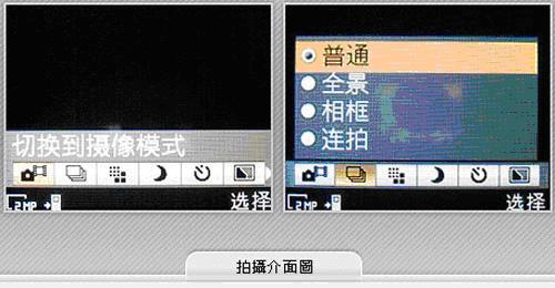 三星F330的200万像素摄像头被安排到了滑盖背面,旁边是自拍镜,但是没有配置有补光灯让人感到比较可惜,而且也不具备自动对焦功能。F330的全屏取景画面相当的简洁,但是对于不是很熟悉F330拍摄操作的用户来说不是很方便。在拍摄的选择方面,提供比较传统的单张拍摄和连拍选项,还有马赛克风格和全景模式。另外还提供了一些效果、白平衡和相框等功能。