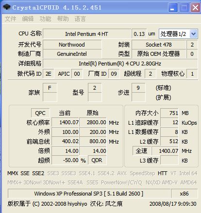 我在前段时间换了CPU(见截图),但用优化大师进行性能测试时分数极低,后来用其他软件检测,发现核心电压、核心速度也与网上所见的截图不同,请问是什么原因?与配置有关吗?