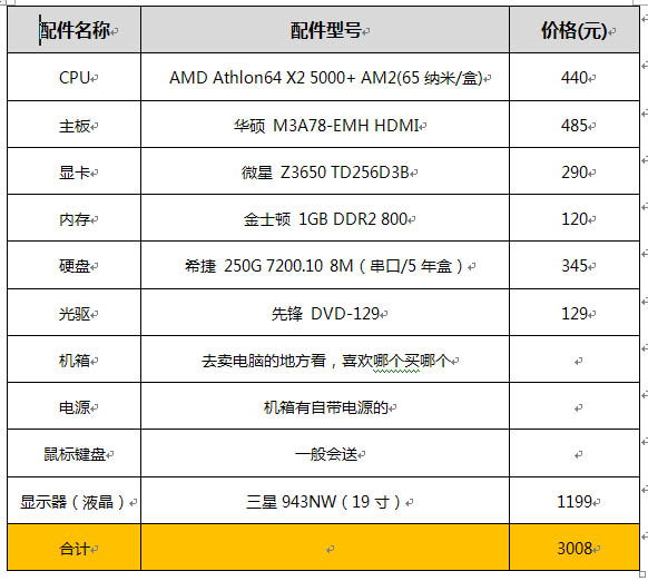 大家好,我想配个大概在3500RMB左右的电脑,包显示器的,自己写了个配置单,由于对电脑也不是很了解,想在这里请大家帮忙看下整个配置的兼容性以及价钱的合理性怎么样,谢谢大家~
