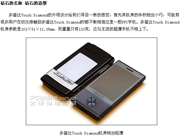 多普达Touch Diamond改变了许多我们对于智能手机的观点,也正因如此,才能吸引我们对Touch Diamond的关注。今天,我们PConline评测室就对这款最新的多普达Touch Diamond进行详尽的评测。