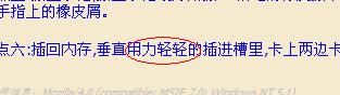 注意点六:插回内存,垂直用力轻轻的插进槽里,卡上两边卡扣就OK了。用户系统信息:Mozilla/4.0 (compatible; MSIE 7.0; Windows NT 5.1)