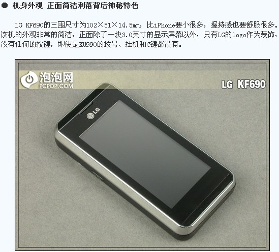指尖多媒体 LG滑盖触屏KF690深度评测