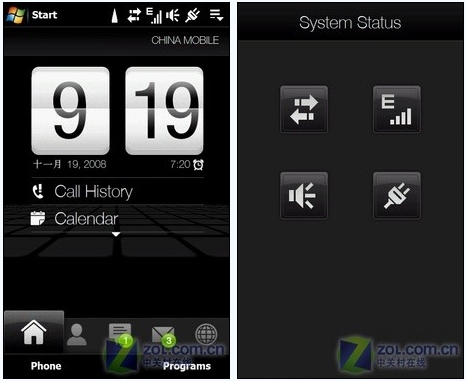Touch HD的用户界面相比于它的3.8英寸大屏幕并没有什么新意,除了Touch Diamond上出现的TouchFLO3D界面之外,HD的整个界面细节我们在当年的TouchDual上就看到过了。比如触及屏幕右上角的状态显示图标时,会有一幅放大版的图案显示出来,方便用户的点选;比如大开始菜单、改良的音量显示;比如任务管理器等等,都是我们大家熟悉的面孔。至于黑体字的显示,也是在Touch Diamond上出现过的。看来TouchHD能让我们更加期待的就是3.8英寸大屏幕的其它实际应用效果了。