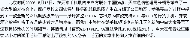 八大绝技 WiFi/WAPI摩托A3100独家评测