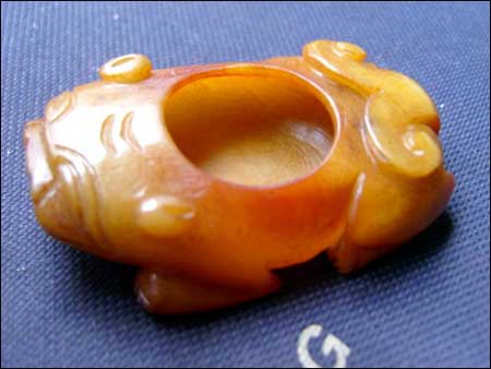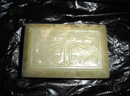 青玉和青白玉:色呈深灰绿至蓝绿色,不透明;青白玉是青玉与白玉之间的过渡类型,呈灰绿色。