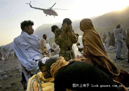 美联社的印度摄影师拉菲克-马克波的参赛作品“印控克什米尔地震幸存者等待救助” 获一般新闻类单幅三等奖,图为:印控克什米尔地震幸存者等待救助。