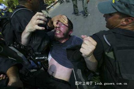 Getty图片社的以色列摄影师Uriel Sinai的参赛作品“强制疏散犹太定居者”获一般新闻类组照一等奖,图为:强制疏散犹太定居者。