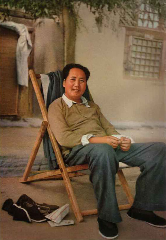 毛主席在河北省平山县西柏坡村。(一九四八年)