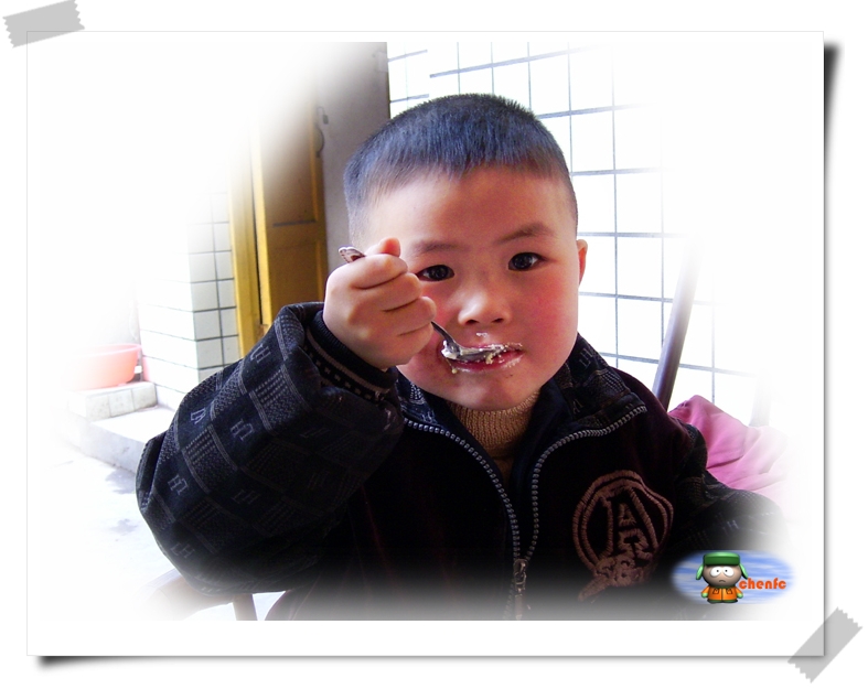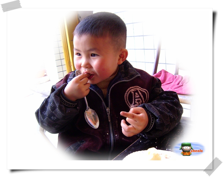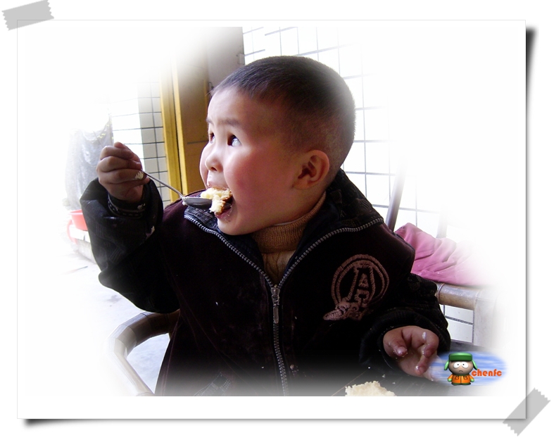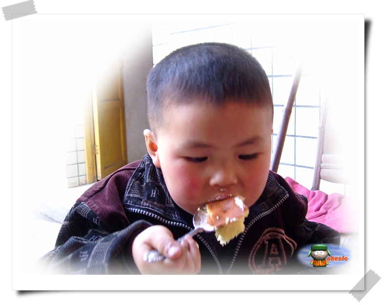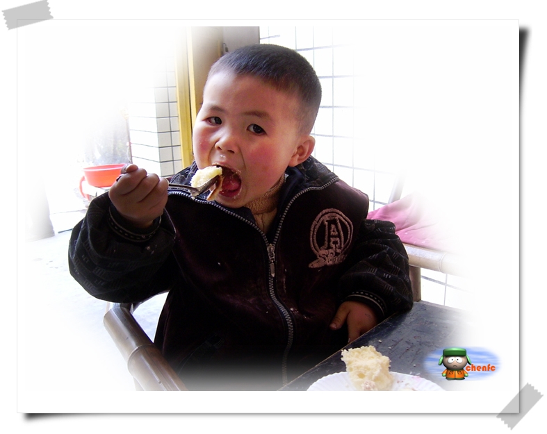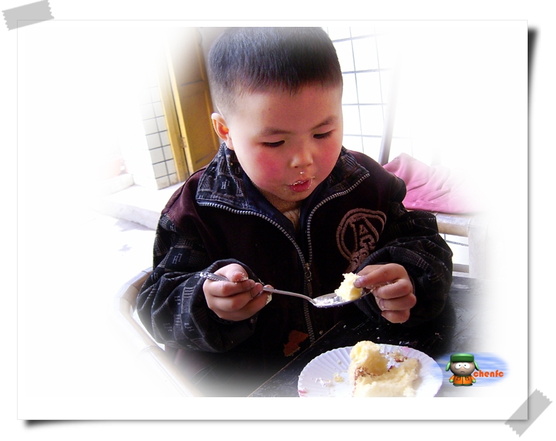 小家伙过4周岁生日,独自享受着生日蛋糕。