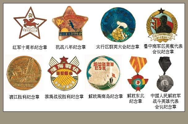 中华人民共和国授予中国人民解放军在中国人民革命战争时期有功人员的荣誉证章。包括:八一勋章和八一奖章;独立自由勋章和独立自由奖章;解放勋章和解放奖章。八一勋章和八一奖章的中心图案是红星和八一,突出反映中国共**于1927年8月1日独立领导革命武装的光辉史实;独立自由勋章和独立自由奖章的中心图案是红星和延安宝塔山,象征在中国共**的领导下,革命圣地延安是中国人民禁止讨论政治话题民族战争的革命大本营;解放勋章和解放奖章的中心图案是红星和天安门,象征中国共**领导人民武装夺取全国胜利。中国人民解放军在中国共**领导下,同全国人民一起,英勇地进行了长期革命战争,为中国人民革命事业和中华人民共和国的建立,立下了卓越功勋。1955年2月12日,中华人民共和国第一届全国人民代表大会常务委员会第7次会议根据国家宪法规定,作出《关于规定勋章奖章授予中国人民解放军在中国人民革命战争时期有功人员的决议》,颁发《中华人民共和国授予中国人民解放军在中国人民革命战争时期有功人员的勋章奖章条例》。条例规定,勋章分一、二、三级,奖章不分级。勋章由全国人民代表大会常务委员会决定,中华人民共和国主席授予;奖章由国务院批准,国防部长授予。授予勋章、奖章的条件,以参加革命时间的长短和当时职级的高低,以及是否一直坚持革命工作而无重大过失为依据。授予勋章、奖章的同时发给证书。