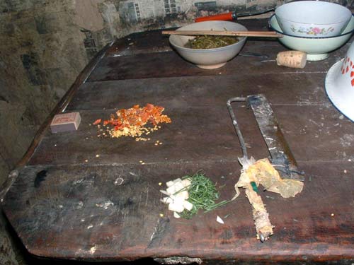 案上准备的午饭,注意那把特殊的菜刀