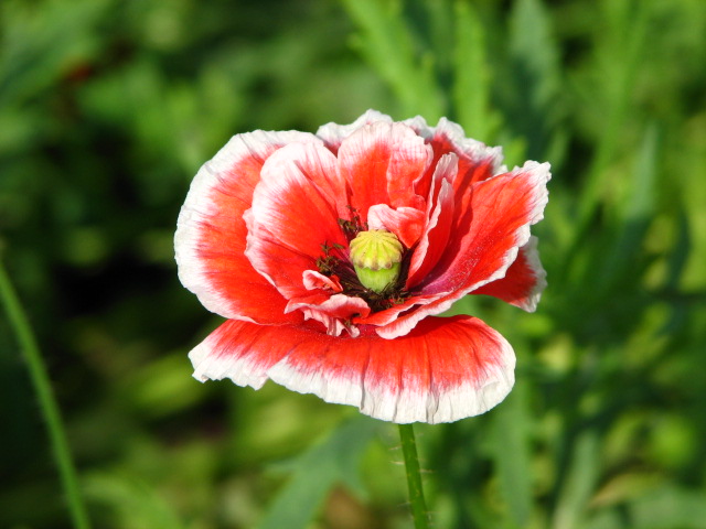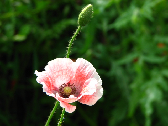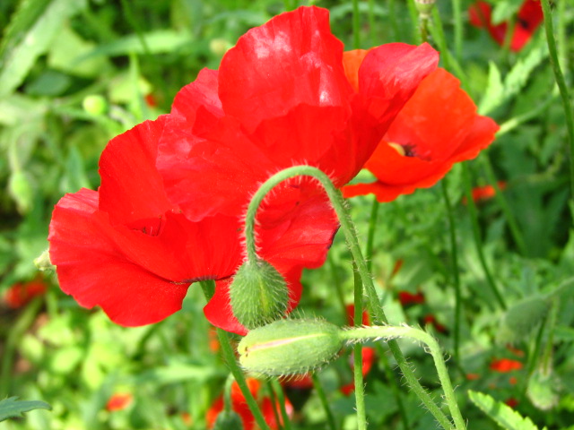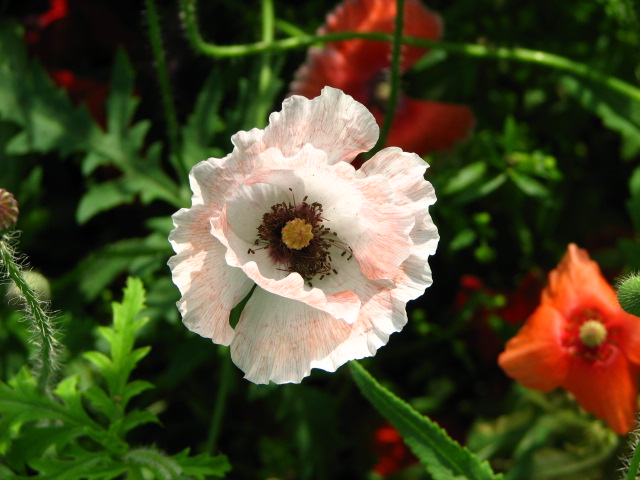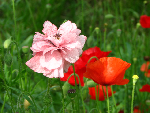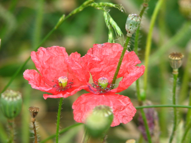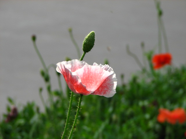 早前拍过一些虞美人的片子,那时,花开正盛,娇艳可人。一月不过,如今香残零落,不成样子。满地竖立着玻璃斑竹谓之无毒罂粟的花籽,花工正在收籽。然而就在这一败涂地中,一些花却仍顽强地迎着日头开放!