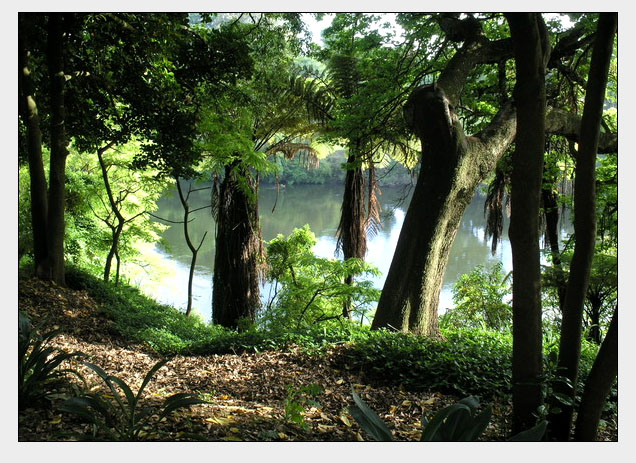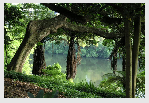一条河穿城而过,这里虽是城市的中心,但河边却不太象是城中,而象是热带雨林。