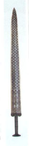 中国古代用于近战刺杀和劈砍的尖刃冷兵器。分剑身和剑柄两部分,剑身细长,两侧有刃,顶端尖而成锋。剑柄短,便于手握。剑常配有剑鞘。中国最早的剑是西周时期的青铜剑。以后随科学技术的发展出现了铁剑和钢剑。