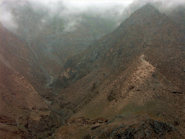 天池的路上,仔细看山腰上的白点,那可是羊群哦~