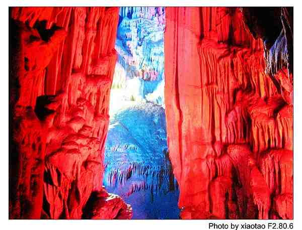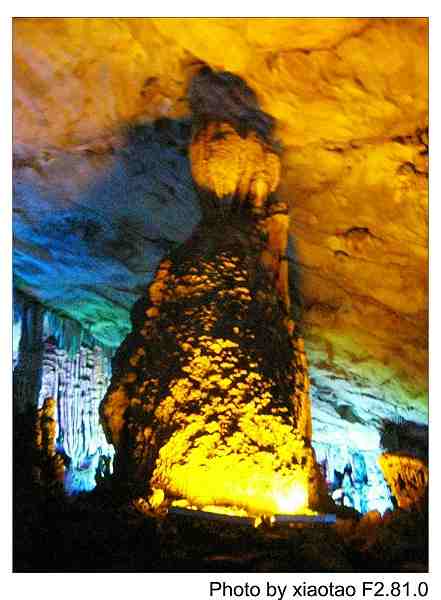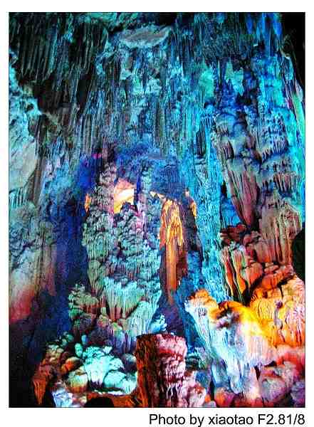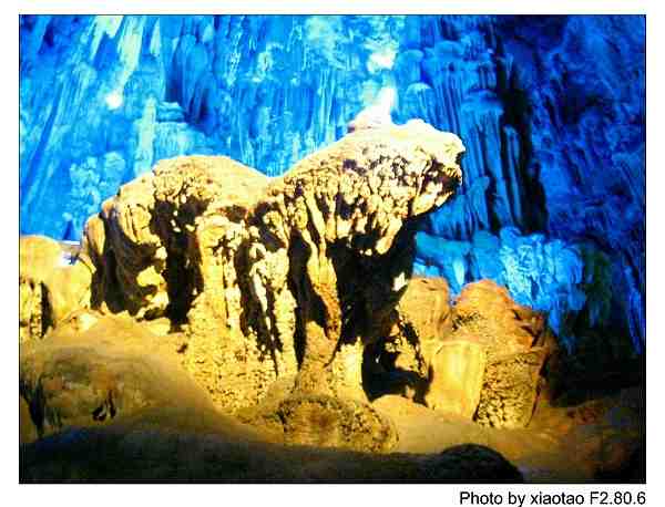5月2日上午去芦笛岩,所谓的郊外,其实也并不是很远,几乎没有出租车到那边,但公交也就走了半个多小时。对于桂林的旅游景点门票,我实在是不敢恭维,这个岩洞门票价格居然要60元一张门票,这也是后来我打消去七星岩的念头的原因之一,并且觉得岩洞实在差异不大,不大喜欢这样人为强加的想象,虽然一些岩石也可以用“惟妙惟肖”来形容。洞中大量的石钟乳、石笋、石柱、石幔、石花, 是在岩洞形成以后, 含有碳酸盐类的地下水, 顺着岩石裂隙流出, 水份蒸发, 碳酸盐类沉淀结晶, 逐渐堆积而成。