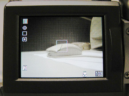 目前市面上5000元左右的数码相机是目前的主流相机。这个层次的相机具有了很多以前在专业相机上才具有的功能例如光圈、快门优先;包围曝光等。在对焦性能上,这些相机一般都使用中央单点对焦,如图5所示,这是CANON公司的POWER SHOT G2 400万像素级数码相机的液景显示屏,屏幕中央的方框就是对焦指示框。