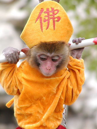 准确的对焦,不仅仅是为了获得清晰的照片,在构图以及表达作者的思想上,也有重要的作用。正确地选择焦点,可以使画面更加简洁,也能吸引读者的注意力到作者想表现的内容上去。图9为一张小猴的照片,照片名字为《“悟空”真的快乐吗?》。拍摄者对小猴的脸部进行了精确聚焦,把一切和画面无关的背景全部置于焦点之外虚化,让读者一眼就能明白这张照片的主角是小猴。顺着小猴的眼睛往下看,可以看见白色的铁链,再结合题目,作者想表达的那种小猴的无奈和痛苦仿佛就在眼前。整副作品具有很强的感染力。可见,正确地选择焦点,对于突出主体,表达主题具有非常重要的意义。