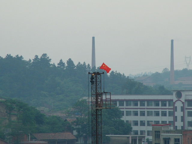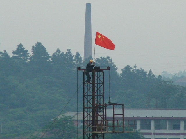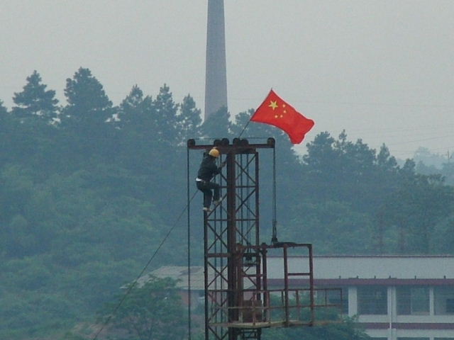 寻找着能插国旗的地方。