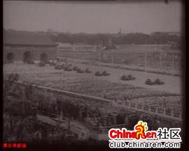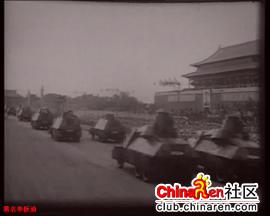 1949年当时战车方队编有坦克99辆,装甲车50辆,汽车108辆,飞机17架,{但是那天看到的是26架 p51型战斗机,其实是第一,第二,第三编队的在复兴门上空做右转后转弯延西直门东直门转向建国门,然后飞了个来回,因为衔接无暇所以看到的是26辆飞机,其中4架带实弹飞行。