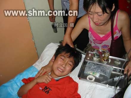 记者见到小伟时,医生正试图从他下体撕下已经腐烂、感染的皮肤。由于伤口已感染至骨头,每撕下一块腐皮,小伟都会发出撕心裂肺般地喊叫……病床上,小伟断断续续讲述了遭父亲虐待经过:10天前,父亲命他趴在地上,将他双手捆在暖气片上,双脚拴在门上,然后再用铁丝束腿,并将铁丝接上高压电……记者看到他浑身上下伤痕累累,旧伤上面还摞着新伤。他的双腿、屁股,到处是泛黑的烂点和淤伤。小伟说这些焦痕是父亲平常「教训」他留下的。泣不成声的小伟母亲告诉记者,夫妻俩在小伟4岁时离婚,因她一直没有固定工作而他父亲抚养费又常常不交,小伟去年开始被迫由他父亲抚养。当天傍晚,小伟突然哭着找到她打工的浴池,这才发现孩子被虐待。浴池的同事匆忙凑了1000元,将小伟送到医院!!