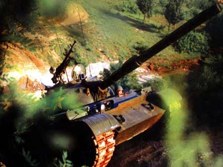 99式主战坦克向演习场摩托化开进