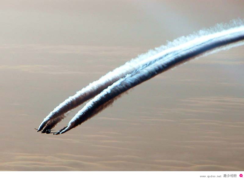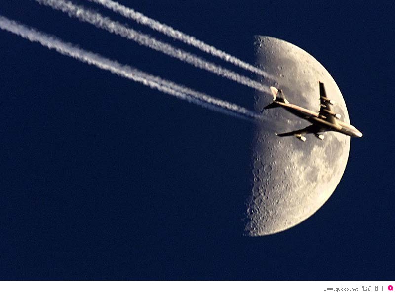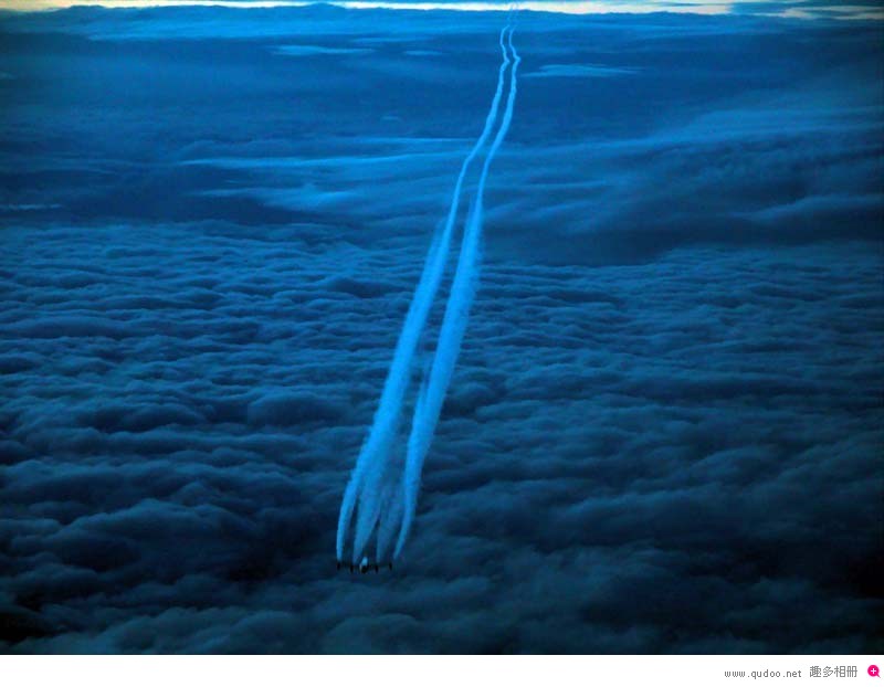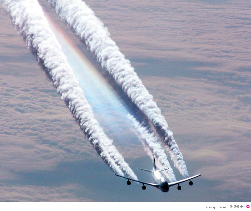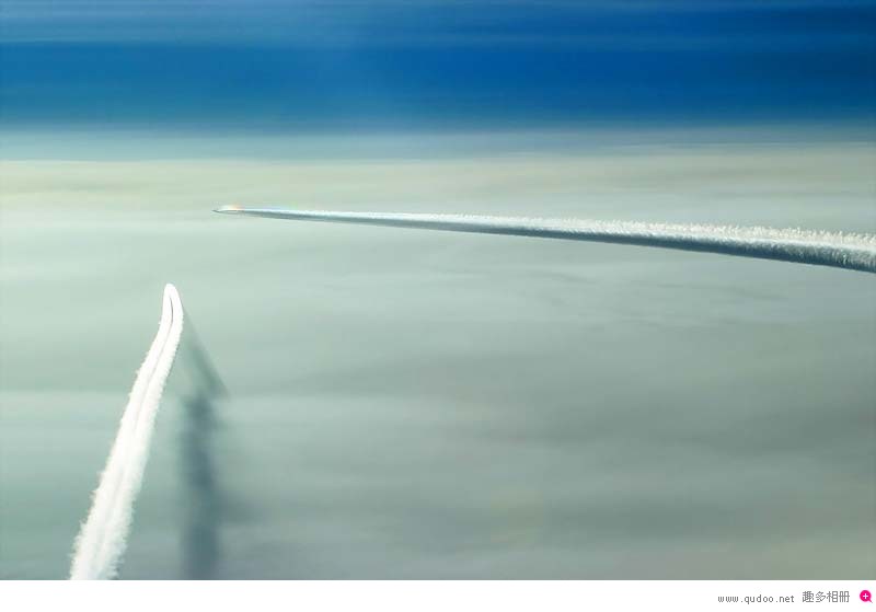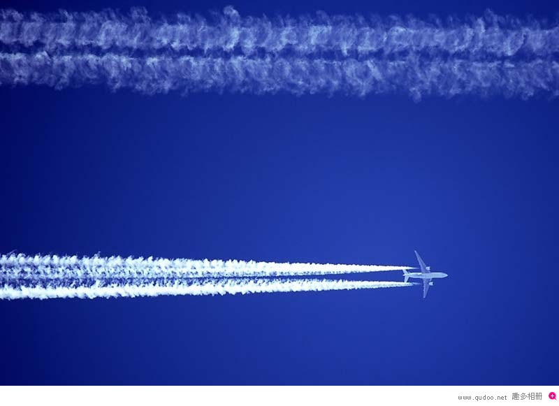 高空飞行中飞机留下的美丽线条