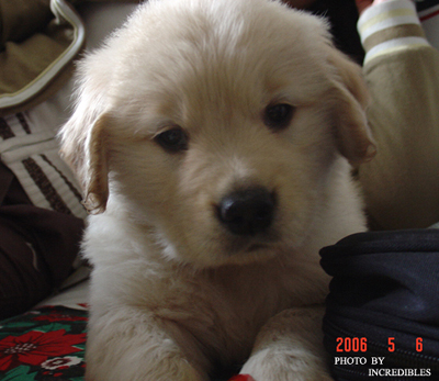 第一天回家留念,一点儿不认生,围着墙角转了不下10圈后,尿了。
