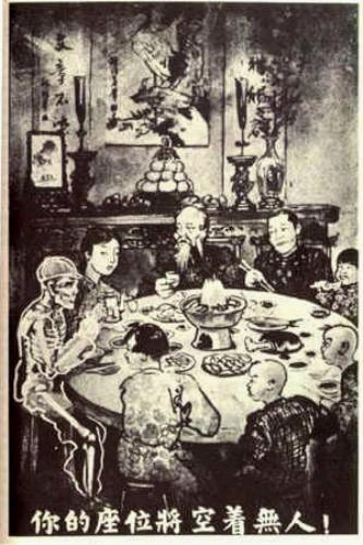 这份传单描述了中国的一个八口之家成员围坐在餐桌前,端坐的骷髅是吃饭的人当中的一个,美国人也许是假设他是鬼魂。传单正面的文字是“你的座位将空着无人!”,传单背面的文字是:“由于共**官员继续中断停战谈判,你将在这个空位与你的家人新年团聚。”但由于中国士兵的家庭都很贫穷,不理解传单中对富裕家庭的描述,也许美国人认为这是感恩节晚餐, 但中国人没有这个习惯。这张传单没有任何适当的军事用途,无法使中国军队士气受挫。