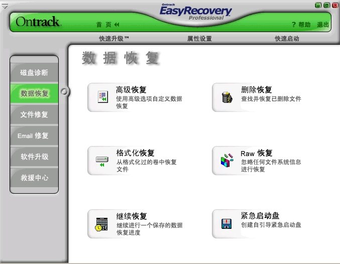 EasyRecovery一款威力非常强大的硬盘数据恢复工具。能够帮你恢复丢失的数据以及重建文件系统。他不会向你的原始驱动器写入任何东东,它主要是在内存中重建文件分区表使数据能够安全地传输到其他驱动器中。你可以从被病毒破坏或是已经格式化的硬盘中恢复数据。该软件可以恢复大于 8.4GB 的硬盘。支持长文件名。 被破坏的硬盘中像丢失的引导记录、BIOS 参数数据块;分区表;FAT 表;引导区都可以由它来进行恢复。