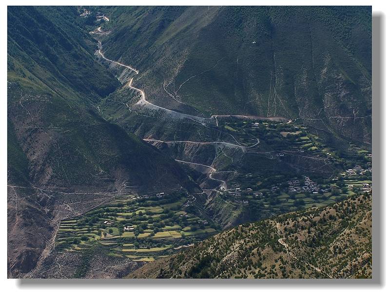 离开香格里拉,向着北方,向着雪山前行......到在奔子栏乡后,汽车就沿着金沙江右岸前进,在汽车左边,是连绵的白马雪山---没看到雪.约四个小时车程到达德钦县城.德钦县城座落在一个山谷里,据说为了防止发生地质灾害,德钦县城将会搬离河谷.县城人口不多,约二万人.城内地势高下不平,坡路很多----晚上坐一位朋友的0.8L的吉利小车,冲个坡冲不上,倒溜下来,惊出一丝丝冷汗