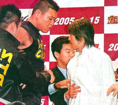 事后才知,这个日本猪,因为星爷的新片的名字《功夫》与他的啦啦队队歌的名字相冲突,所以上前来抗议的。