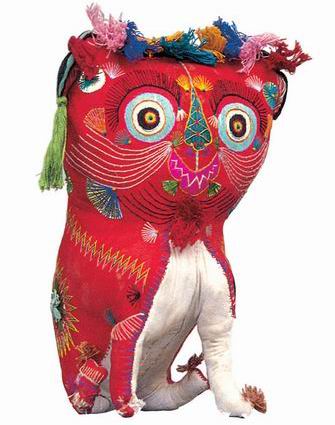 甘肃庆阳布老虎 中国各地布老虎造型多以双鱼眉、人祖鼻,太阳眼为主。