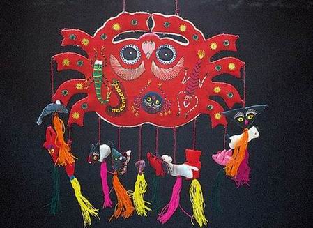 陕北布制鱼 陕西遮裙带儿为人面,双头鱼的组合设计